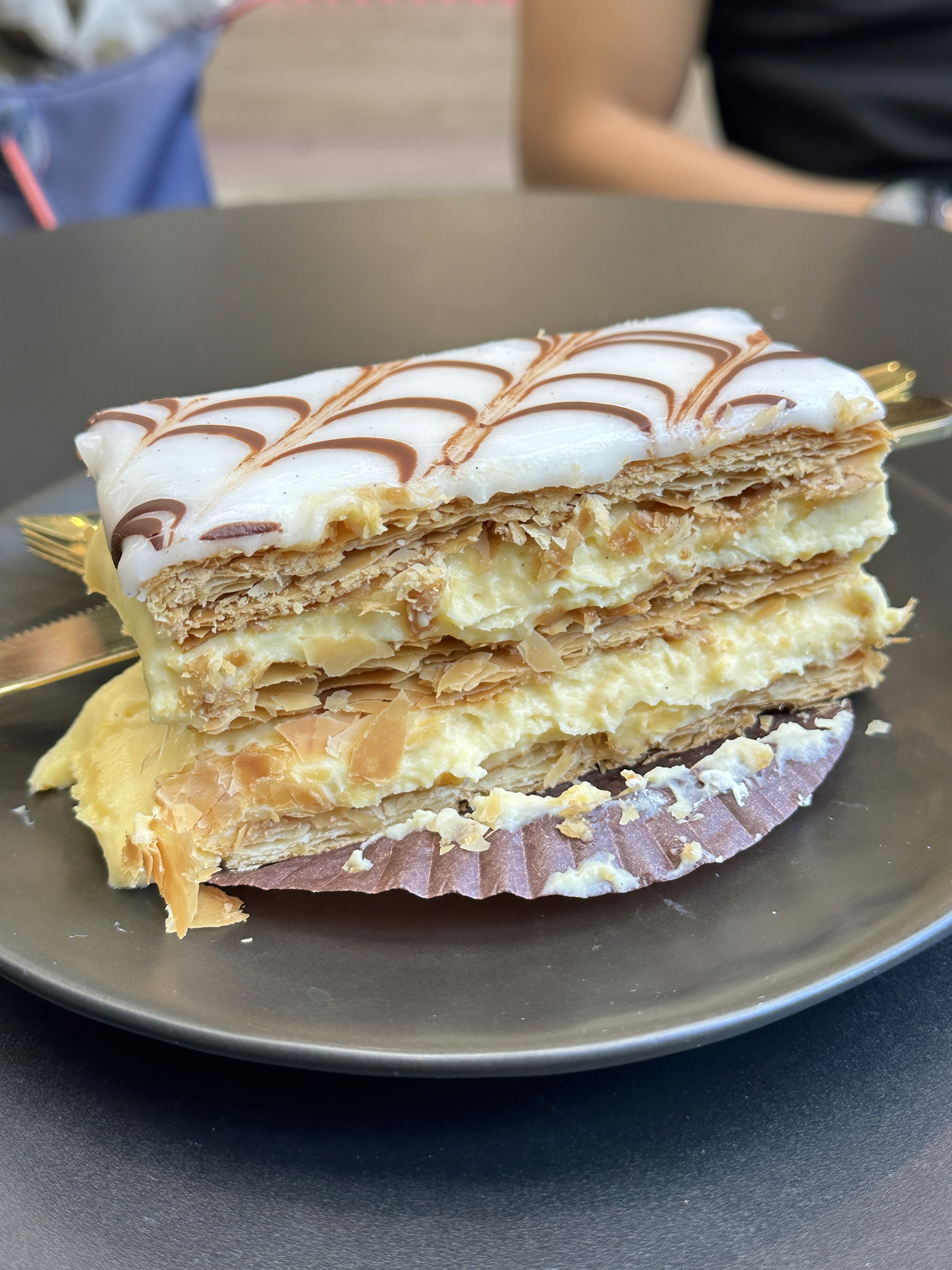 Loved the tarts (choc so rich n smooth, lemon meringue tart also had a good balance). Skip the crepes (kinda paled in comparison to the cakes n desserts). Finished the tarts n crepe and got a second round of mille feuille oop, that was good too, flaky n filled w v light tasty pastry cream. (it can get a lil sweet tho, esp the icing on the top).