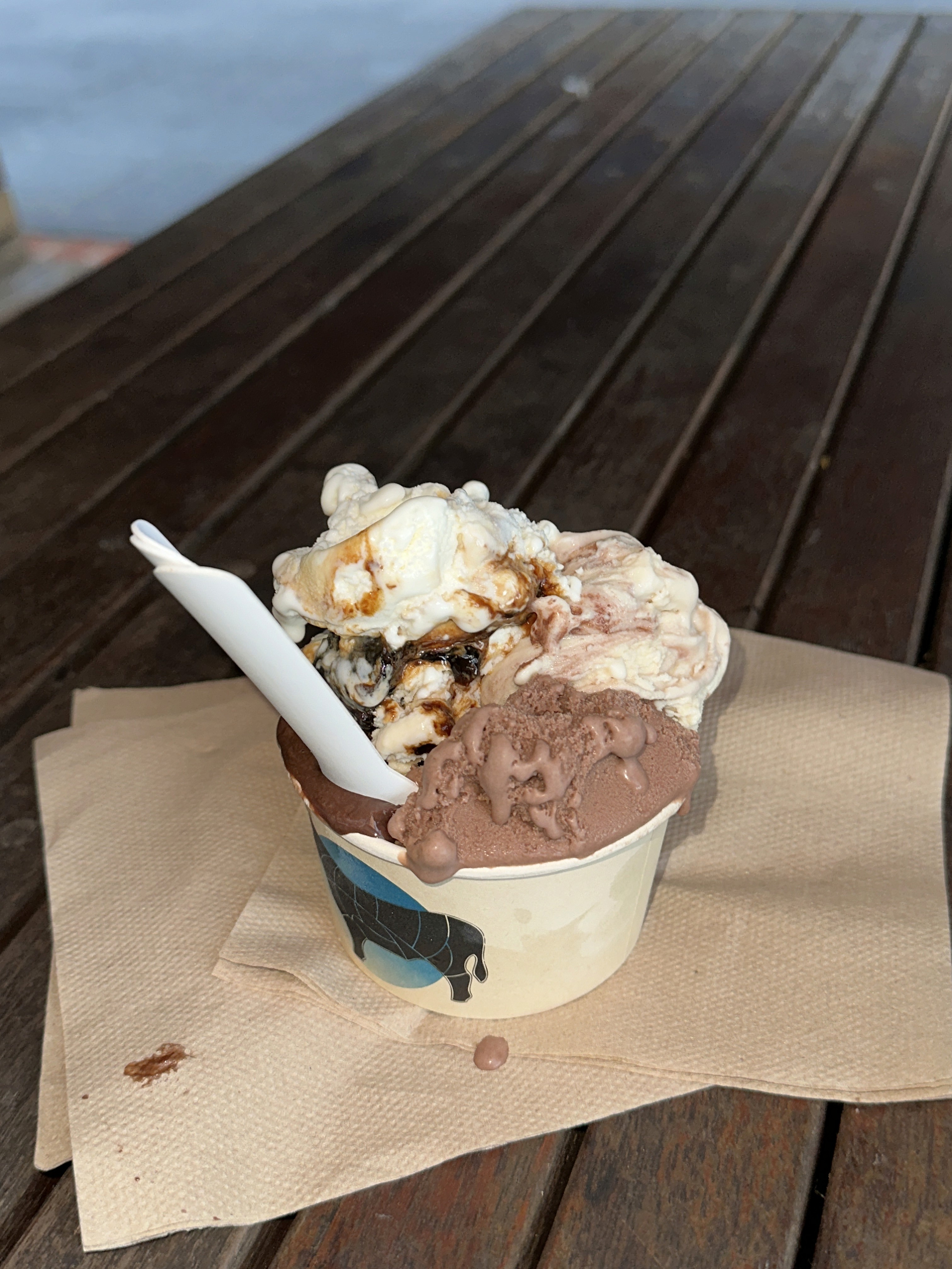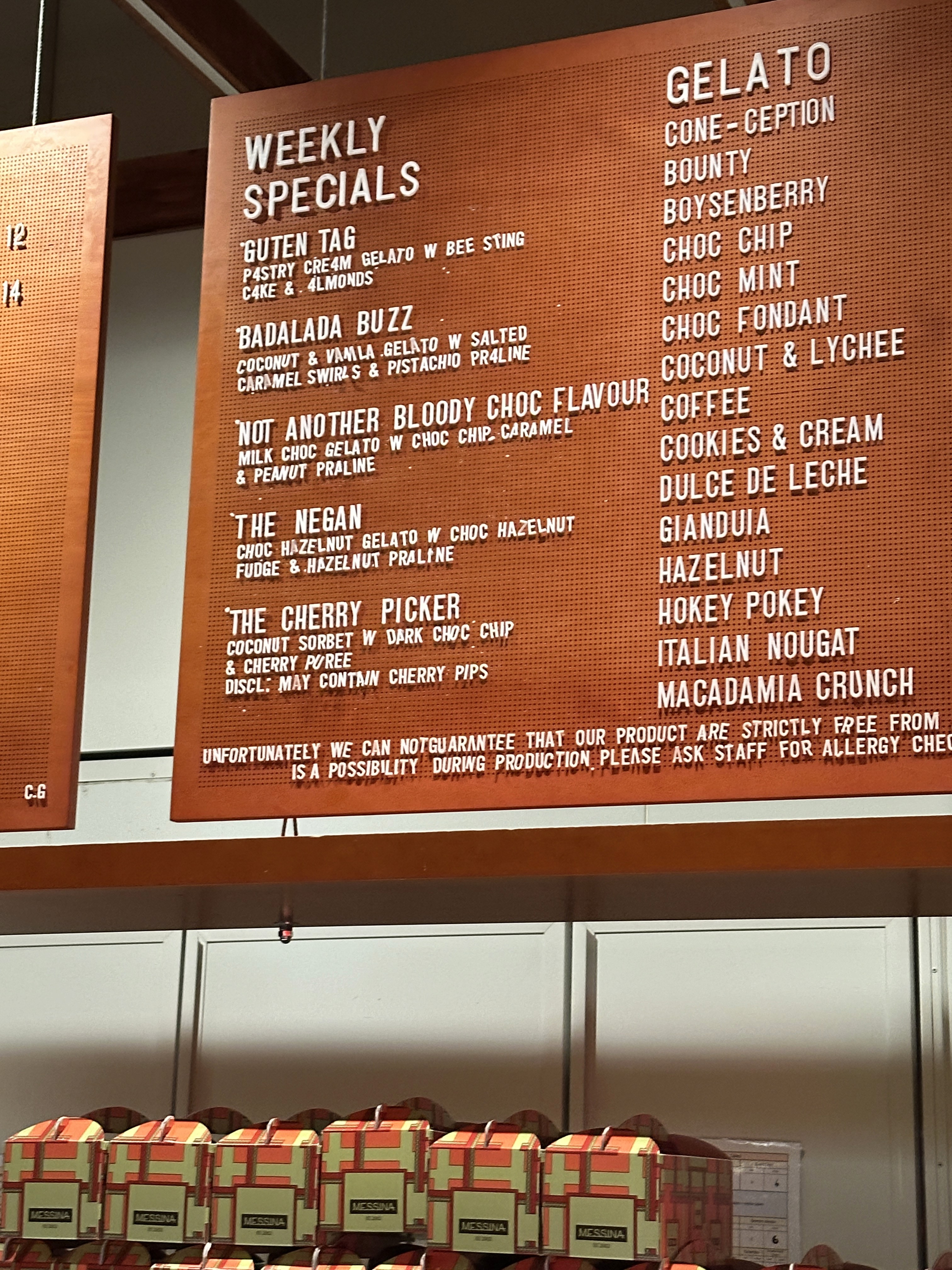 Aaaaand I loved it in Aussie. We went back two times in two days (nearly went a third time the third day but queue was too long that night). They have weekly specials and one of the specials was called The Negan and that was my faaaav flavour (Choc Hazelnut Gelato with Choc Hazelnut Fudge and Hazelnut Praline). I love choc, hazelnut and hazelnut praline sooooo I had that both times. Texture was good like slightly sticky stretchy vibes (in a good way), strong hazelnut flavour n love the cronch from the hazelnut praline damn. I wonder why the experience in sg vs aussie was so diff maybe it's the ingredients or icecream making process or weather (hence the melting) idk man.