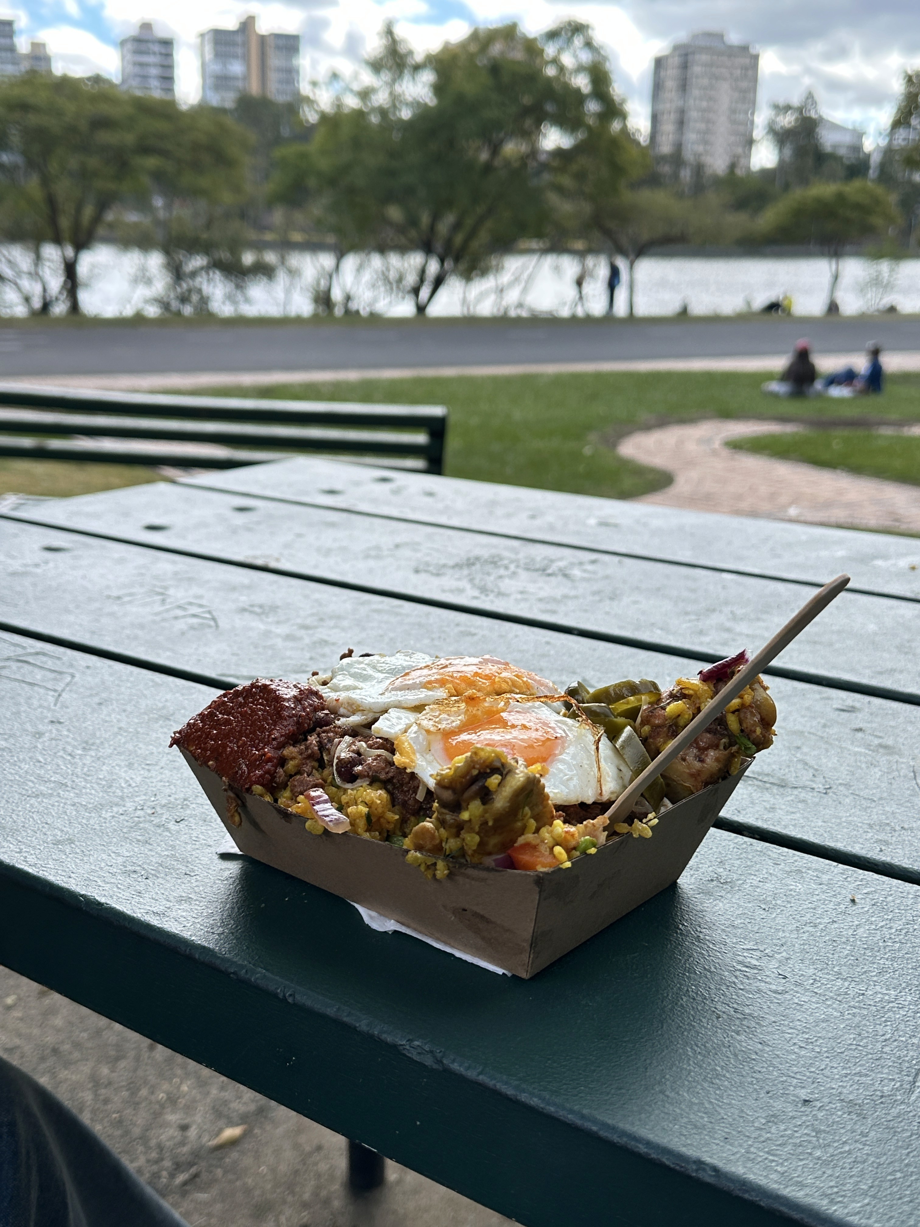 Our trip was across two weekends which was great cuz we got to check out two different Farmers Markets. Their farmers markets are super lively (pretty crowded) and everyone gets some food and then sprawls across on the empty grass patches picnic-ing and chatting. We love to see it. As a Singaporean, there isn't really a concept of Farmers Market so it was really refreshing taking in all the sights of the fruits, veggies, flowers, meat, bread, even kombucha on tap. Loved that this one was right by the Brisbane River so we sat near the river to eat our yummy paella (more on that below).