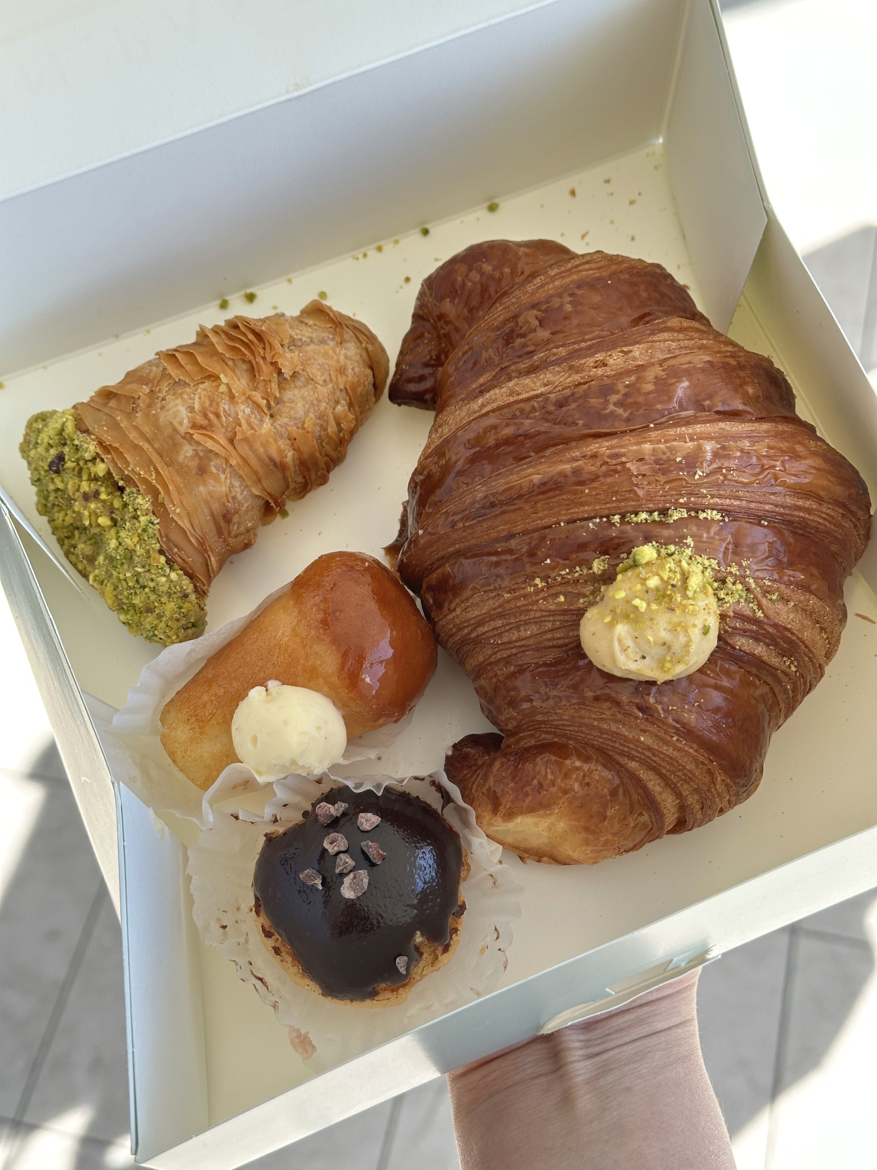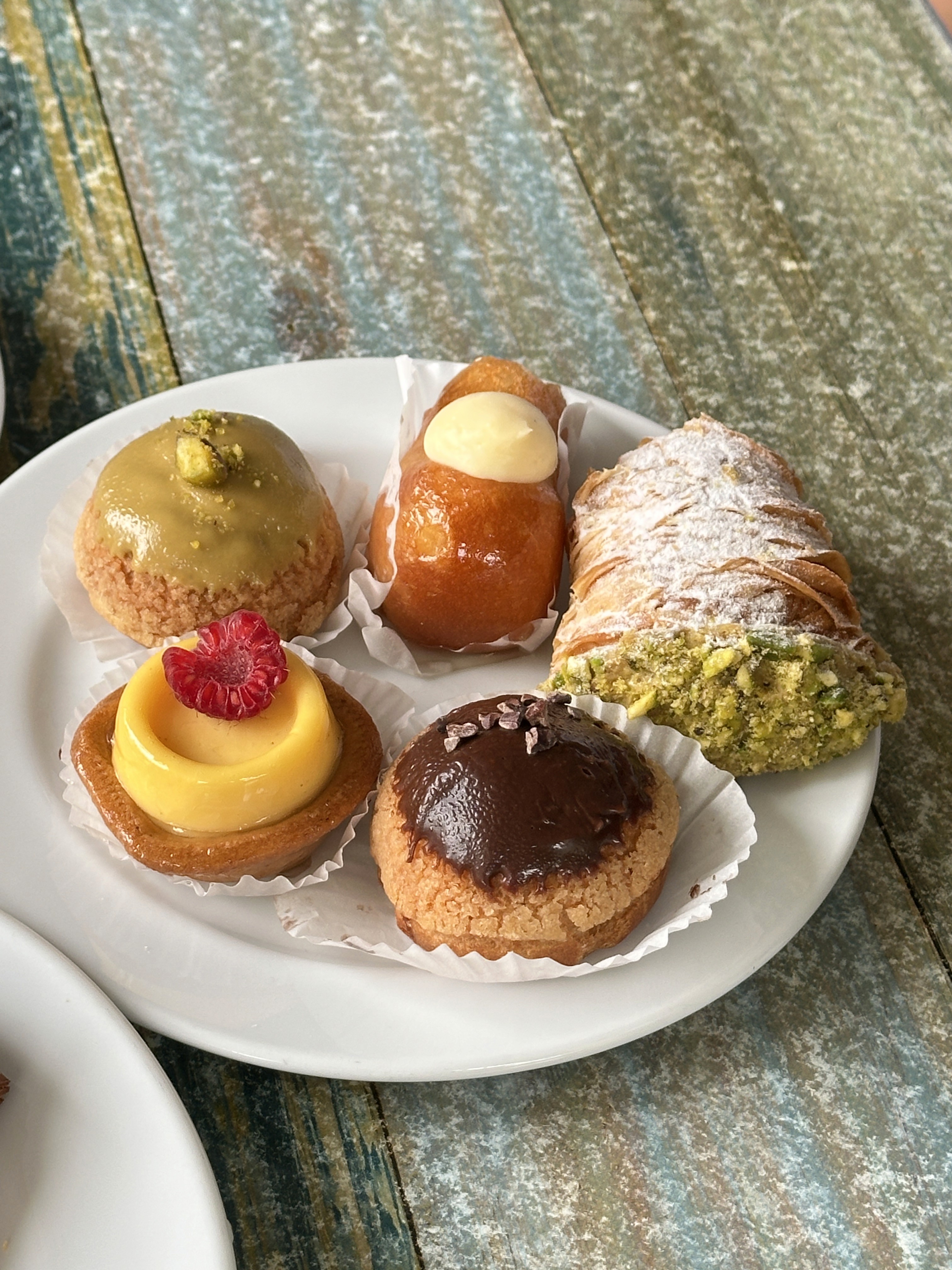 What we ate: Carbonara Danish, Almond & Pistachio Cornetto, Vanilla Bombolone, Pistachio Sfogliatelle, Rum baba, Choc & Pistachio bigne, Passion fruit tart