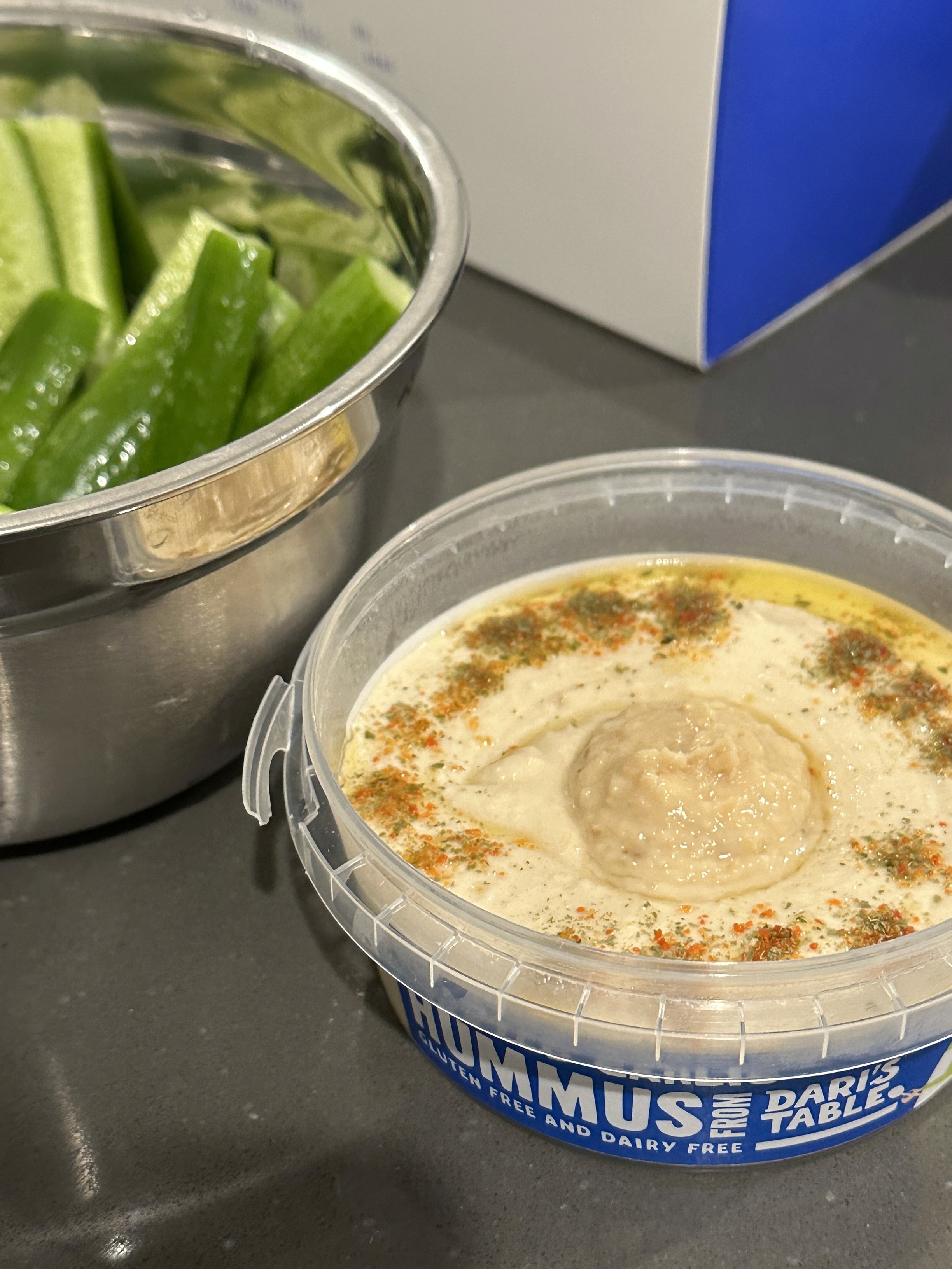 Got Ma hooked on hummus n sis hooked on using cucumber sticks