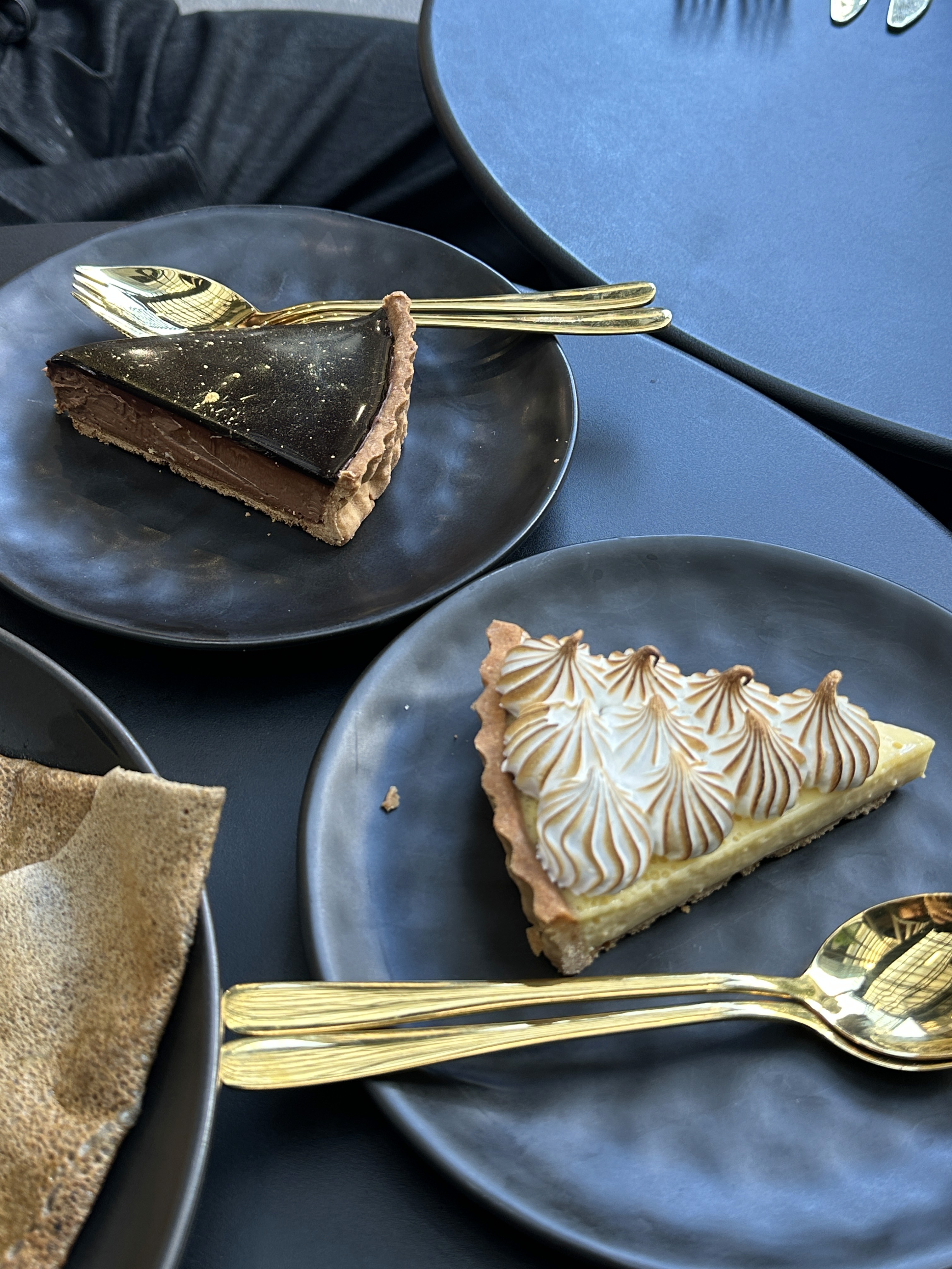 What we ate: Ham & Cheese Crepe, Chocolate Tart, Lemon Meringue Tart, Mille Feuille