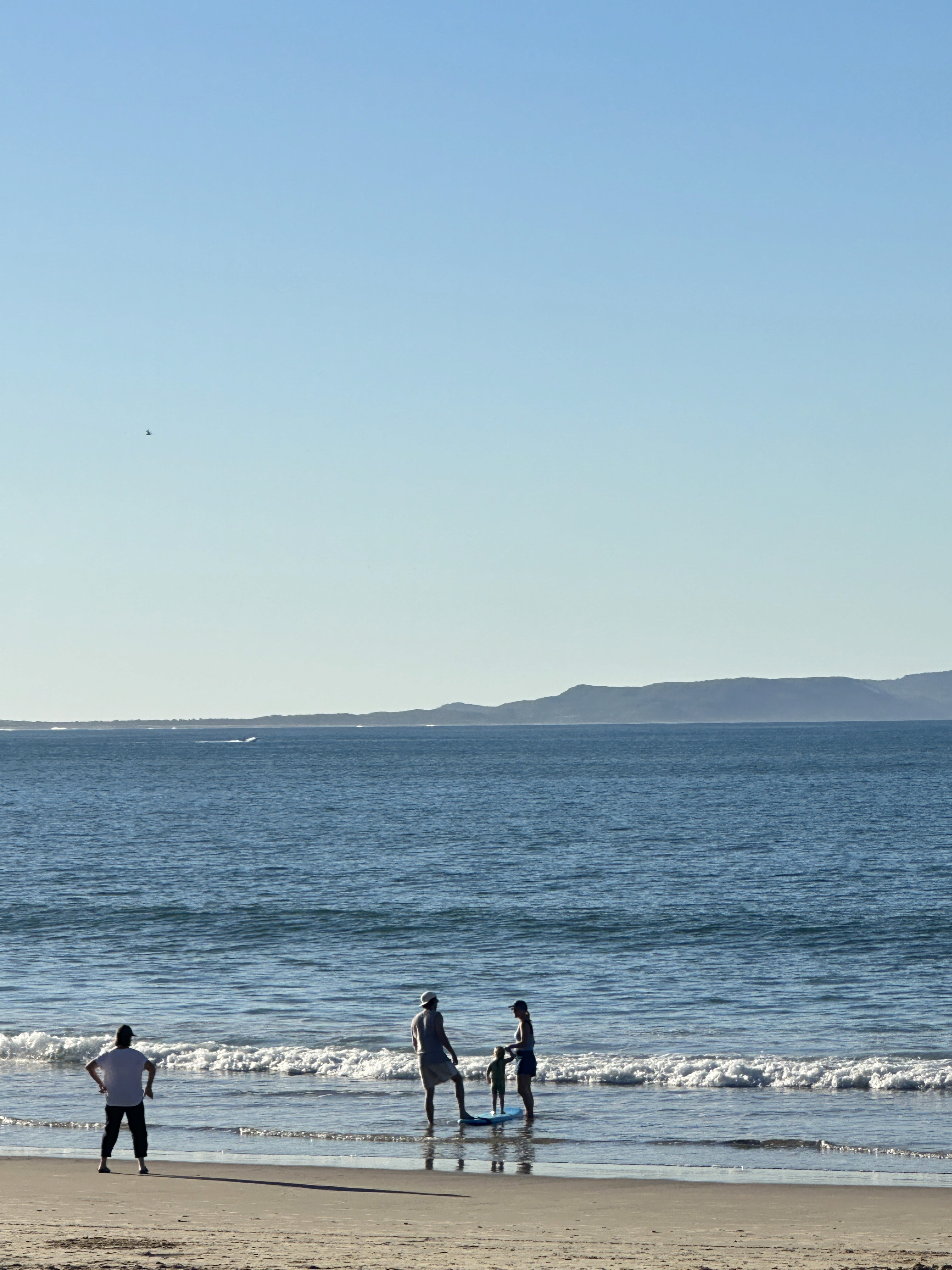 Parents teaching lil kiddo how to surf hehe. Apparently Noosa beach is where many beginners learn to surf cuz of the steady waves