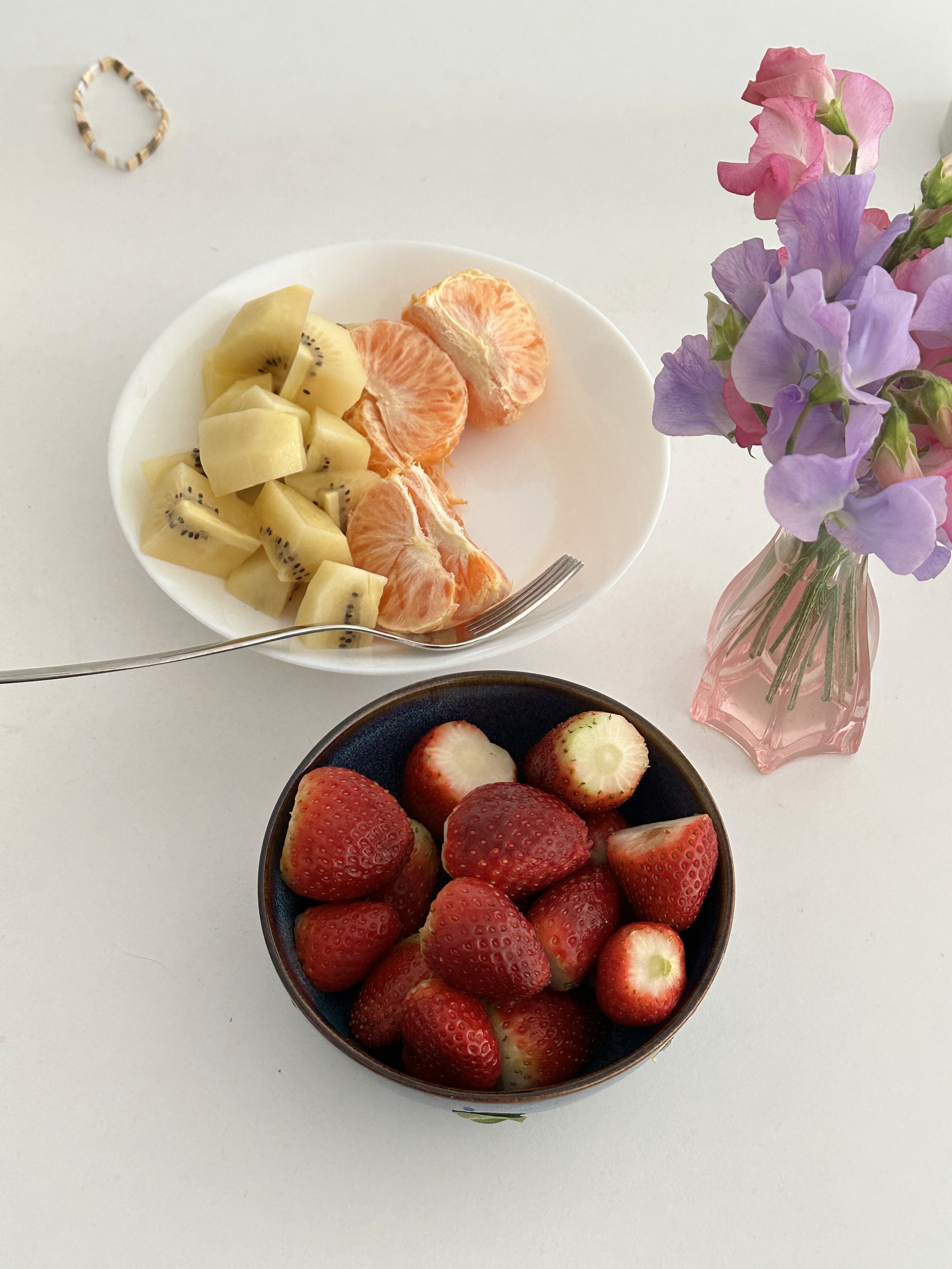 Fresh fruits & fresh flowers (bought from the flower shop at Scenic Rim Farm Shop)