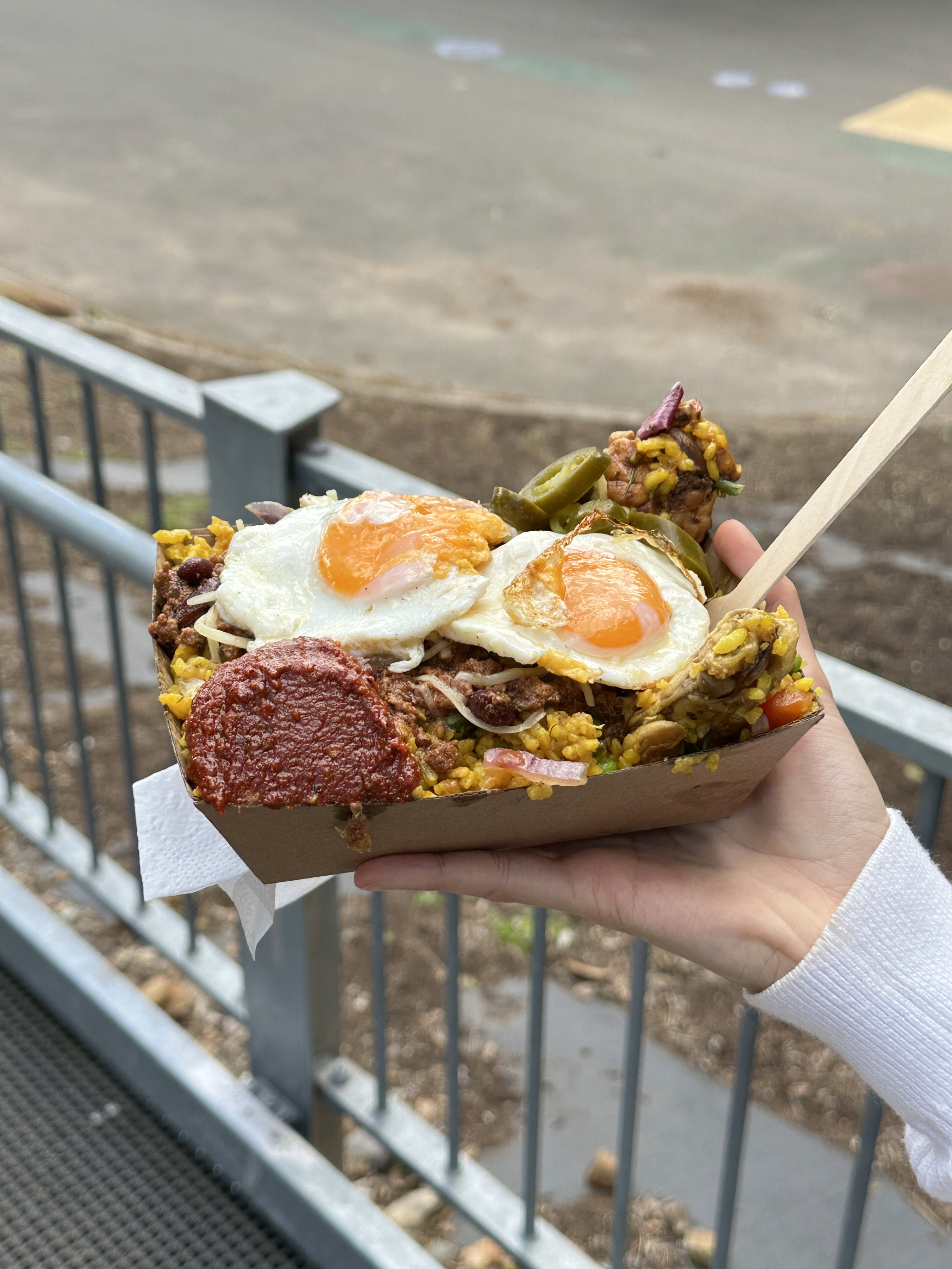 We decided on paella, my sis recommended it and also it looked the best outta the rest of the stalls. I think this was the most value-for-money food item there too. It's located somewhere in the middle of the West Ends Market, they have about three or four of these big paella pans in their stall + blasting Spanish music (I think) so it's hard to miss them.