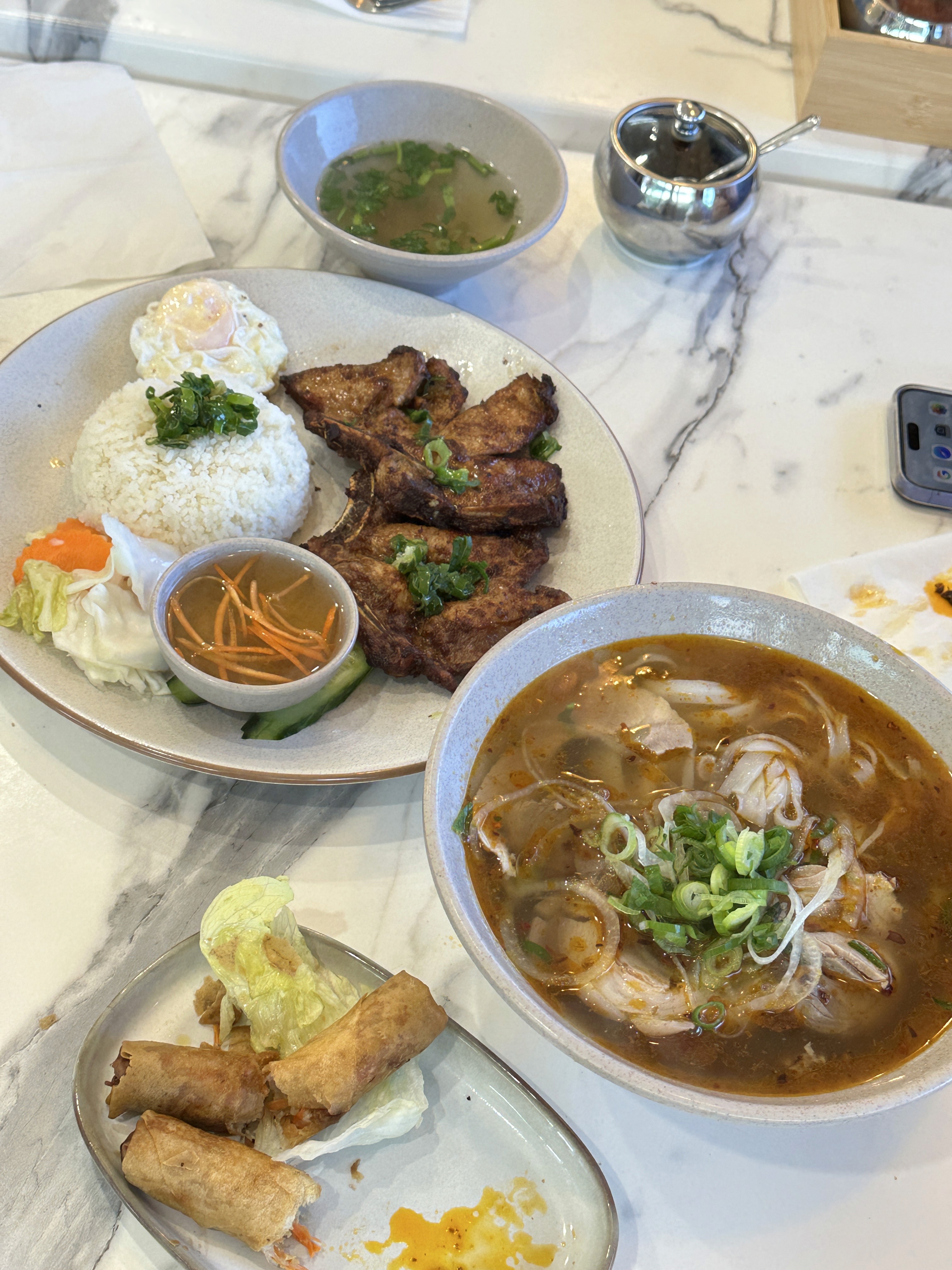 Had a really good Viet meal here. It was also my first time trying Com Tam (broken rice), and it was really yummy and satisfying (the pork chop was very well-marinated). We also tried Bun Rieu and Bun Bo Hue (both my first time LOLLLLL), slightly on the sweeter side, so the Com Tam was still my fav dish here.