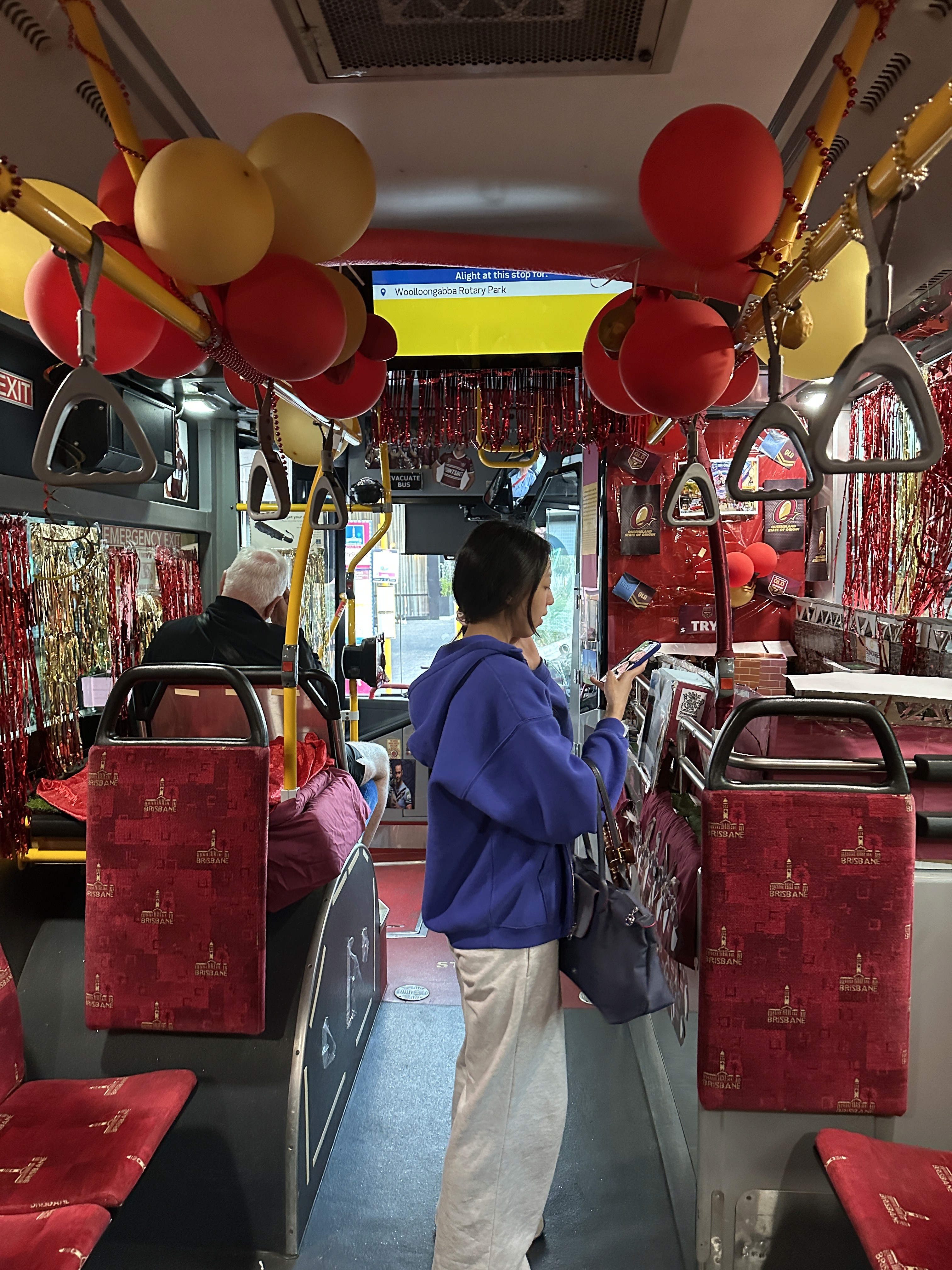 #1 fan bus driver truly decked out his bus man. Context: the Brisbane rugby team won the league the previous night. Love to see the enthusiasm man