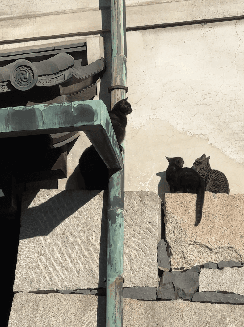 Next stop, Nagoya Tower! Tbh I think it's pretty much like every other castle in Japan (no h8 no disrespect) but the experience was still pretty special because of the little things we saw on the way like a group of cats who had climbed all the way to the top of the entrance roof, the temple before the actual Nagoya Castle and its beautiful curved timber roof, and the cutest shiba inu in samurai outfit with his stylish parents (all photos below):